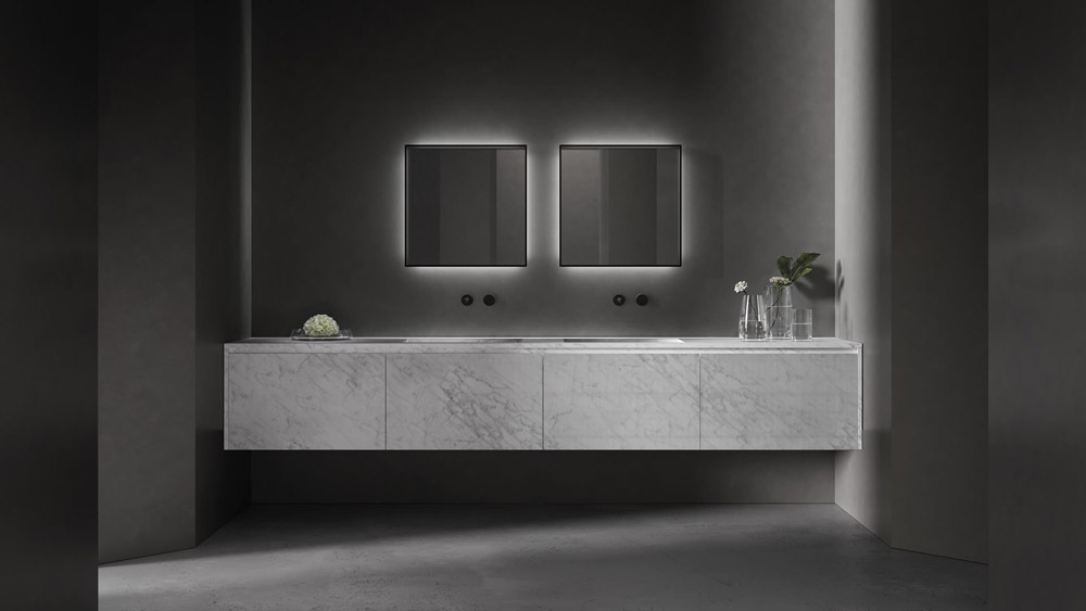 A continuous counterwall, a boiserie that unifies indentations, projections and thicknesses, a new backdrop on which to stage the protagonists of the bathroom environment. Offset is a project of synthesis, of union, of integration, because it allows sanitary ware to be perfectly aligned and integrated into the space. An extension of Anima Liquida collection and more generally a new step in Antonio Lupi’s research on the furniture wall storage theme.
