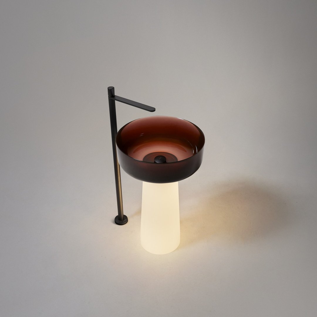 Round sink in Cristalmood, top mount or to be combined with pedestal ALBUME 12 in CRISTALMOOD complete with drain pipe fitting and open plug.
