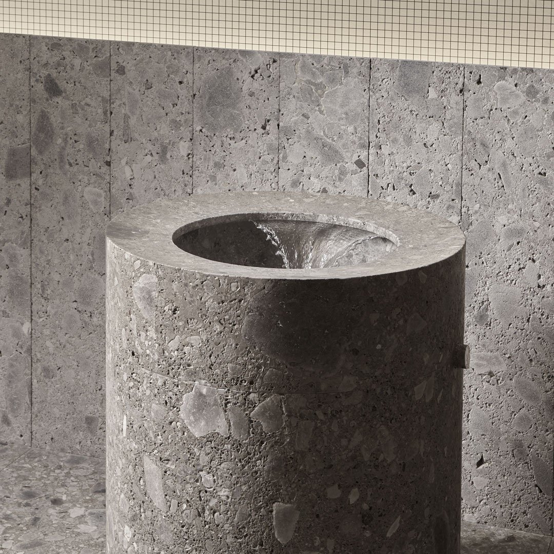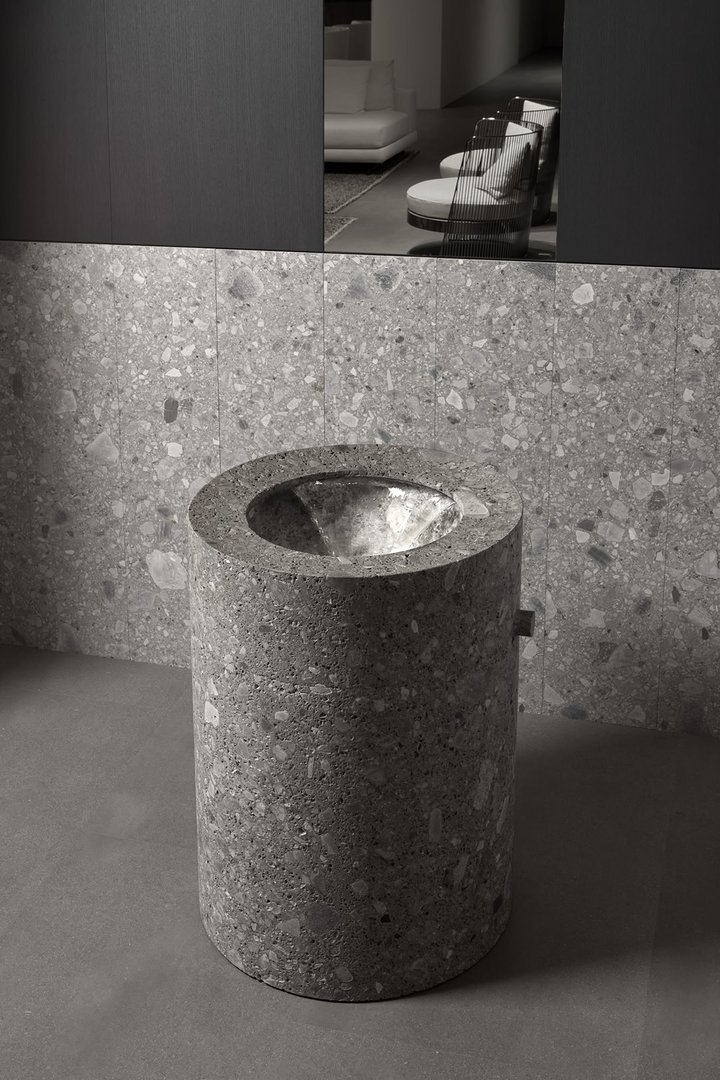 A project designed primarily to stimulate reflection on life and man’s relationship with water. To bring the daily bathing ritual back to its ancestral value and thus rediscover a connection with our most authentic side.As lymph through the body, water carves the stone, bearer of life”, tells Giorgio Rava. “Anima Liquida is a reflection on water and man that takes us back to the origins of life to remind us of what we are made of. It is meant to free water from the yoke of technology and from the many devices that determine its performance, witnesses to the blind human ambition to dominate elements”.