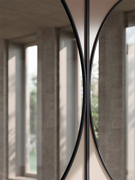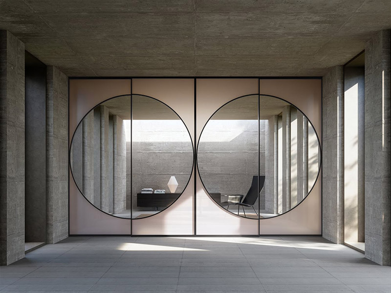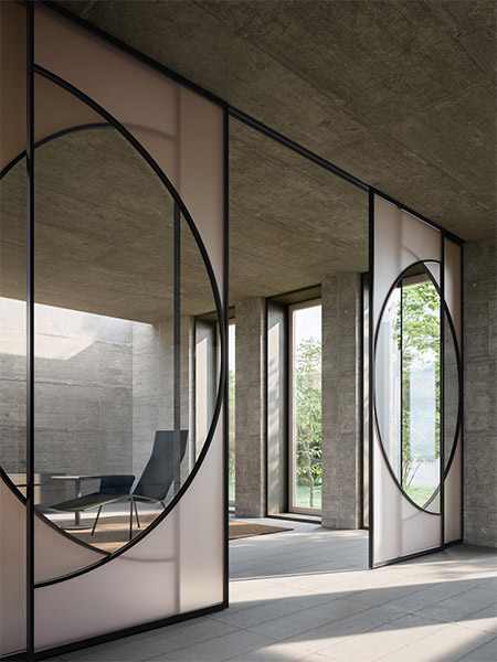 The Archi sliding door with track achieves unparalleled sophistication with a system that allows the doors to fully overlap, maximizing the opening capacity for a high-end experience.