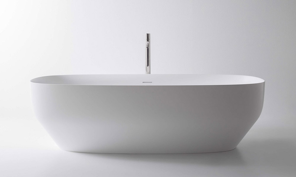Essential shape, a welcoming volume and iconic in its essence. The freestanding Borghi bath is made of Cristalmood, Icemood, marble or stone. The marked chromatic personality and the typical reflections make it an absolute protagonist of the space, a remarkable element around which to build the bathroom environment. The volume is pure, capacious, ergonomic, lightened by a narrow base.