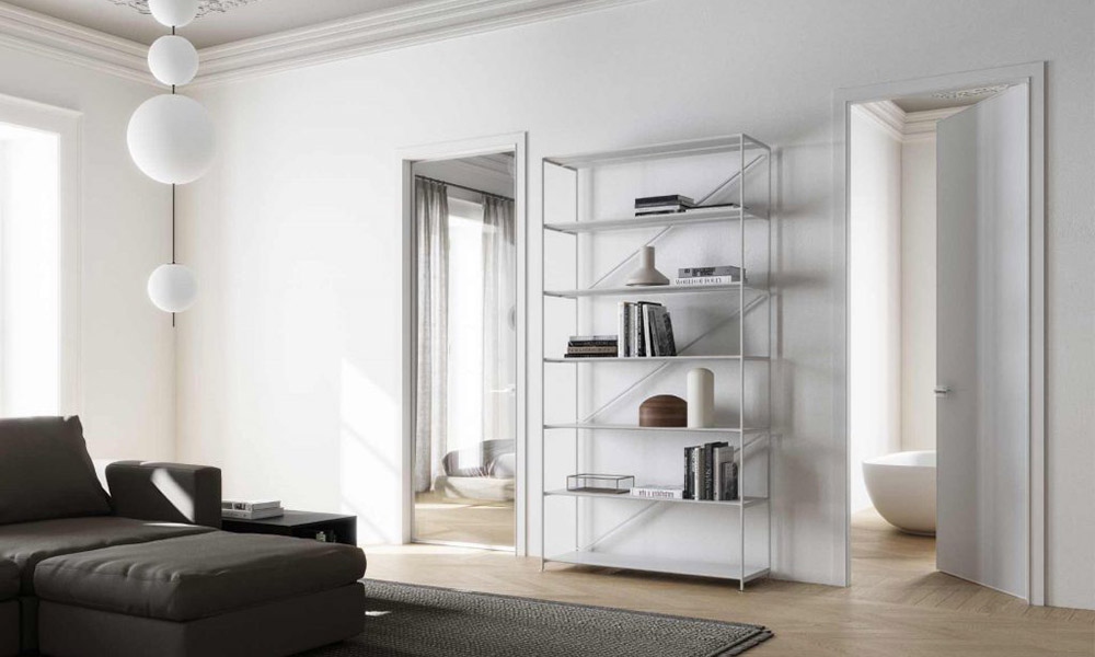 The swing door with an 18mm frame that allows one to choose what jamb to integrate into the wall, depending on stylistic/design requirements. In fact, they range from eclectic aluminium jambs that can feature glass/aluminium casings, flush to the wall jambs (with plasterboard or wood panelling), to flat jambs, and visible or recessed jambs.