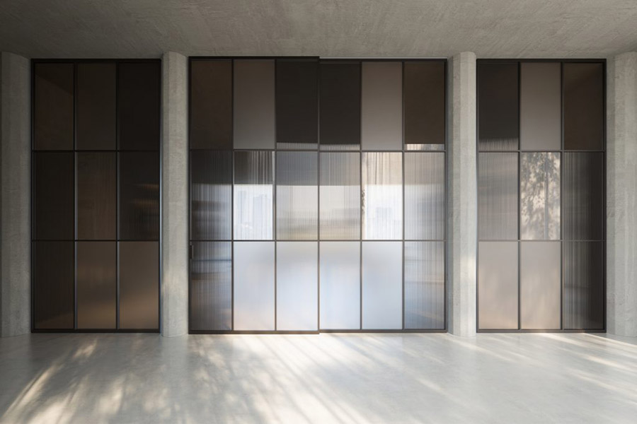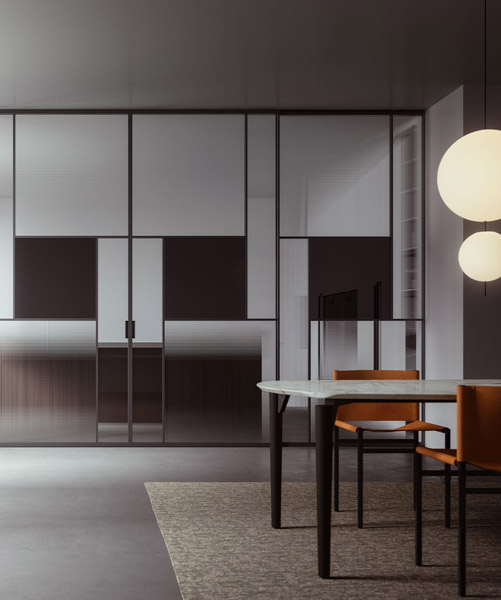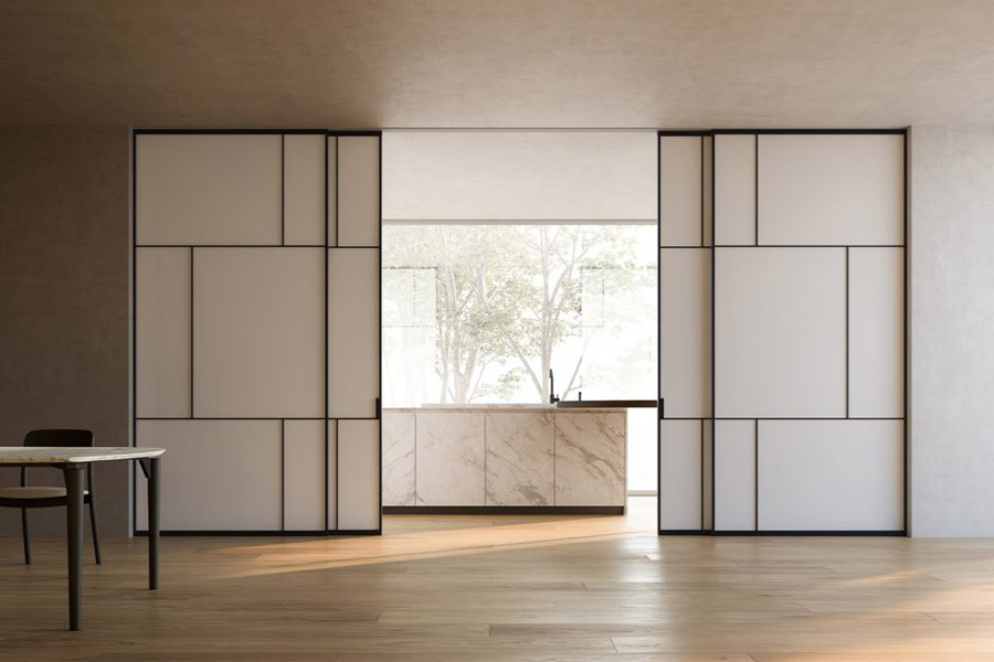 Grande Officina sliding door with track combines personal style and technology. Besides the option of choosing between three different designs, it’s equipped with advanced opening technology allowing the doors to completely overlap.