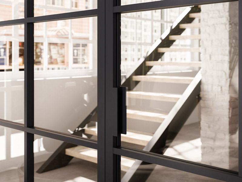 Grande Officina sliding door recreates the connotations of an industrial style aesthetic, ensuring contemporary technical expertise by optimally integrating with any kind of setting. The doors, available in three different designs, flow silently for a high-end experience.