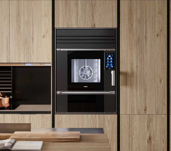 UNOX has created a fully integrated design and production system that allows key processes to be kept in-house, thus ensuring maximum control over product quality. SuperOven is the first oven 100% Made in Italy, seamlessly integrating cutting-edge technology from the finest professional ovens. Designed to satisfy the most refined palates, SuperOven encapsulates UNOX’s 30 years of experience in crafting professional ovens, the preferred choice of Michelin star chefs around the world, into a luxury smart appliance designed to fit the most sophisticated interior design. The smartest and the most intuitive oven you could ever think of. Technological and cutting-edge, SuperOven is equipped with an easy-to-use and intuitive digital control panel that allows you to activate over 400 cooking programmes, for which all it takes is to select the type of food and the desired result and the oven automatically determines the settings, adapting them to the amount of food being cooked. The built-in accessory drawer is meticulously designed to ensure kitchen utensils remain organized and easily accessible, from professional trays and the smoker to the detergent. SuperOven boasts a built-in hood complete with a steam condenser and professional active carbon filters that efficiently absorb cooking vapours and ensure the elimination of odours in the kitchen, maintaining a consistently fresh and clean environment. SuperOven continues to update its sophisticated cooking programmes, elevating the culinary experience to a whole other level. All these features are fully automated and can be activated with a simple touch of the panel. In addition to science and technology, cooking is also, and above all, a form of art.
