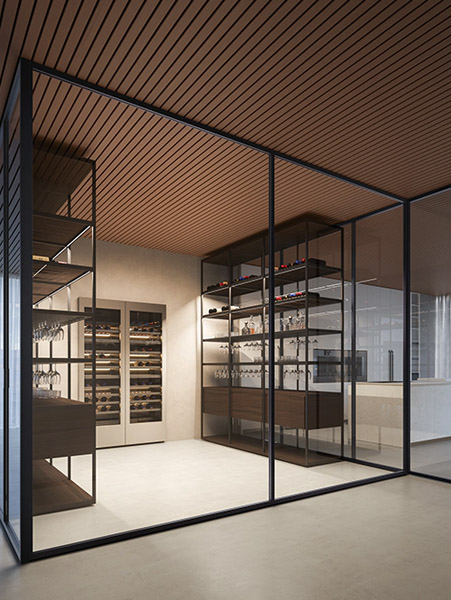 MY ROOM System to divide rooms with glass, ensuring visual connection and privacy. MyRoom is a system that partitions space by creating rooms using framed glass panels and hinged doors. It allows for dividing rooms with glass while maintaining high visual connection and enhancing the usability of spaces dedicated to personal passions.