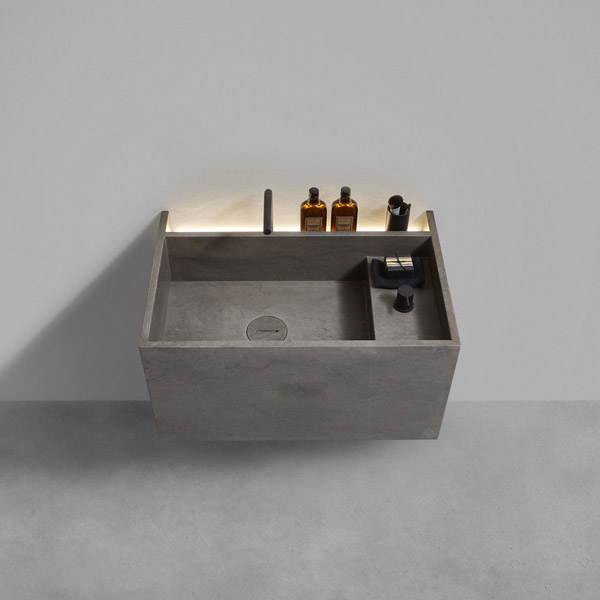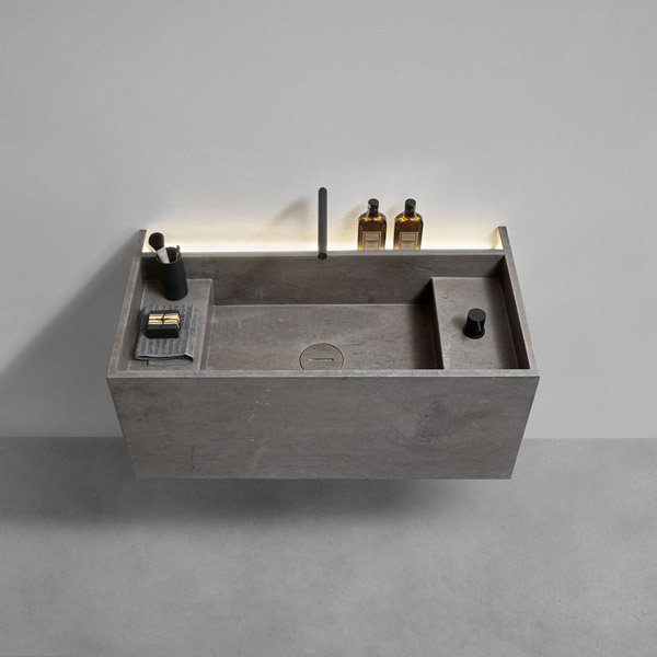 The collection comes to life from the series of tops already presented by Antonio Lupi, and because of this, in addition to the sink, it is arranged to hold everyday objects that find a place in a dedicated and illuminated space near the side. Stone is the great protagonist of these monoliths, the shape of MyStreet comes from the knowledge of the material and man’s work to give it a contemporary shape.