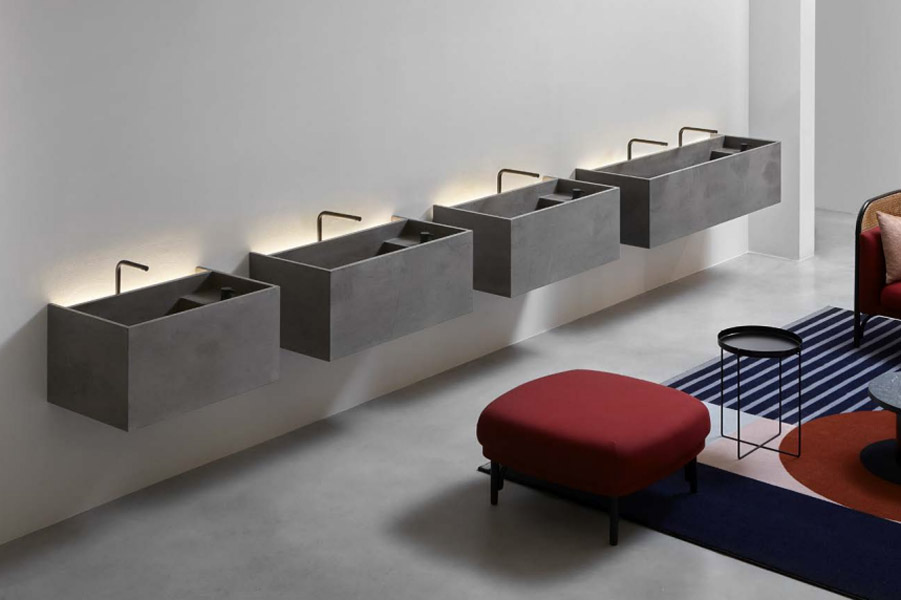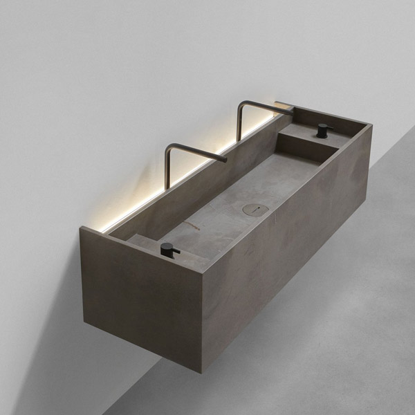 Shapes are square, perpendicular lines draw pure geometries and define volumes with different functionalities, and space is best utilized through balanced proportions, subtle thicknesses, and measured heights. The available sizes and configuration combinations make each sink unique.