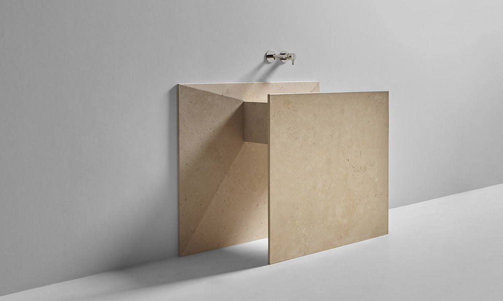 The Nabatei sinks collection, named after the merchant people of ancient Arabia, consists of a series of solid marble tops carved to form the basin of the sinks and storage compartments. Sinks of different shapes and sizes, drawn by orthogonal geometric lines defined by thin thicknesses of the material. An essential sign that is enhanced by the uniqueness of the stone, the infinite chromatic shades, the unrepeatable variations of color. An explicit reference to nature and man’s willingness to govern it.