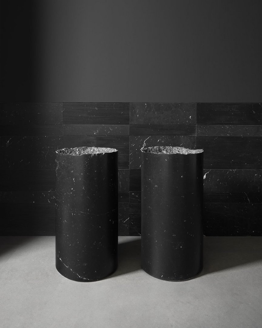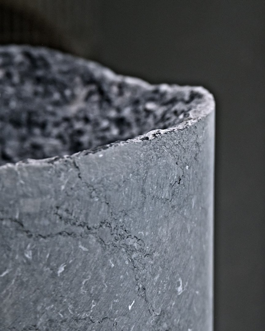 Neolitico, and it could only be called so is the new freestanding sink obtained by manually digging the basin, to simulate the action of water that drop after drop erodes the material. The ritual of nature replicated by the hand of man to give life to a rough surface, revealing the inside of the material, as opposed to the perfection of the cylinder furrowed only by the unique veins of marble.