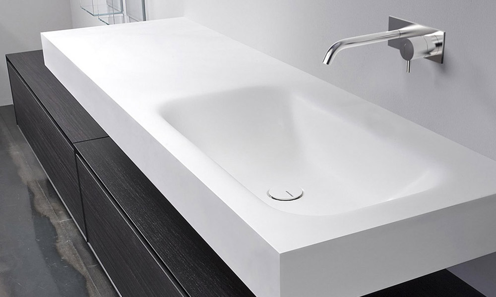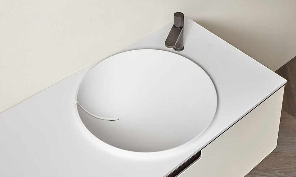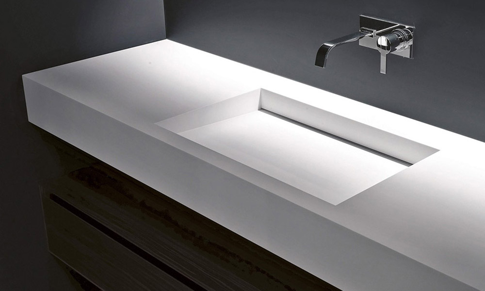 A standard size basin with a depth of 54 cm. Nido has a rectangular shape and is available in both the Satin or Texture (stone effect) finishes, to define a nice contrast and an unprecedented tactile sensation between the top and inside of the basin.