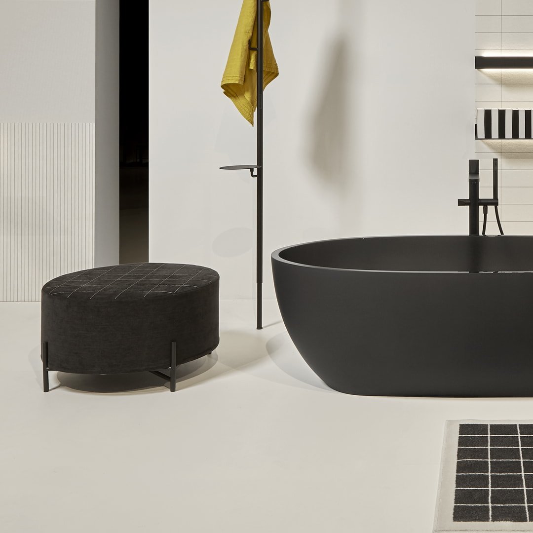 One pattern, two colors, three shapes. The geometric progression narrates, as befits a theorem, a small collection of accessories with a transversal use and a unitary concept. The Paesaggi Sospesi poufs have multiple functions – informal seating, support surface for a coffee tray, footrest – bringing the attention on the characteristic of finished and defined objects. Their small and solid volume has a support of a light metal structure. So light that it can be seen and forgotten in an instant, to leave perceptual space for what is above.