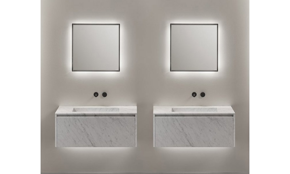 Piana, on the other hand, is the collection, designed by Nevio Tellatin and presented in 2011, which simplifies the production process because it is made in modules, starting from a technical core that is repeated and leaves room for multiple combinations of dimensions and finishes. An essential and measured design, both in the suspended and floor-standing versions, an ability to be both complement and protagonist, to enhance the forms of the other collections through a “silent” and effective design. A formal simplicity always precious, a friendly and well-known image, with a groove to determine the opening of the doors and immediately simplify the opening and closing operations.