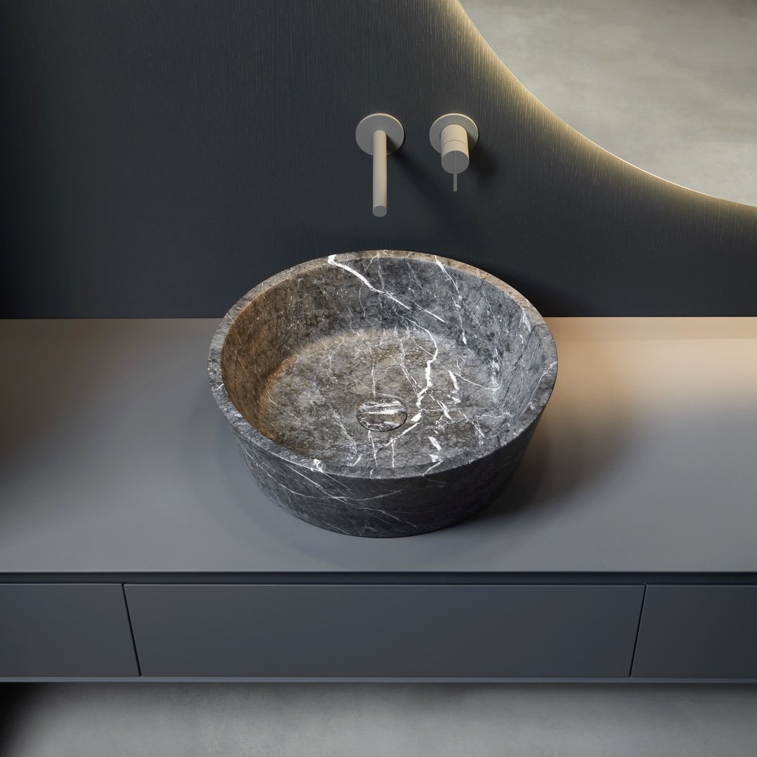 Materials: Sink available in Nero Makao, Pietra Luna, Pietra Vesuvio, Alabaster.
