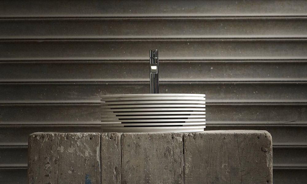 Tradition meets technology in a decomposed standardized form, sectioned, intersected by an orthogonal lattice, a cylindrical volume on which the machine has mapped out a clear and definite sign according to a project that leaves open endless possibilities of composition. A freestanding ever-changing sink due to the elimination of pieces imagination can take shape, the image is revealed, the essence comes to light. Lights and shadows, depth and reliefs, combinations and distances, connections and insulation. The pixel game that forms the basin is completely oriented on consequentiality, on proximity, on decorum that comes from the material itself. A gesture, that of subtraction, revealing the shape, which allows you to customize the volume, and which amplifies the three-dimensional design of the project. Pixel is subtraction to compose.