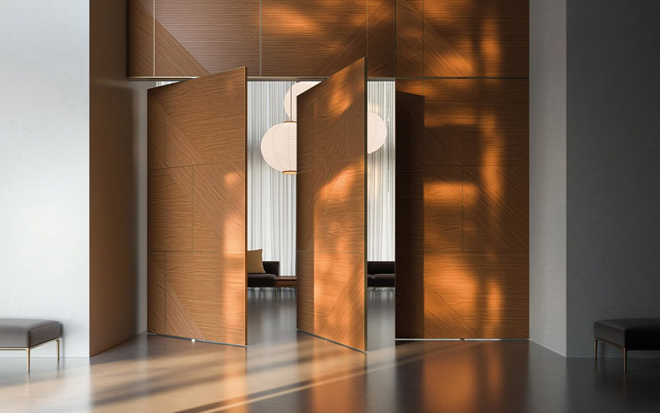 ADL is a company specialising in the design and production of interior doors, opening and closing systems for the connection of interior spaces created in 2004 by the entrepreneur and designer Massimo Luca. The range of products today offers a vast range of technologically advanced solutions including classic sliding systems, collapsible sliding doors and doors that slide inside the wall, as well as innovative hinged doors, large pivot doors, fascinating book’style openings and refined glass and aluminium sliding doors that are flush to the wall. Openings that offer the perfect solution for comfort and well-being.