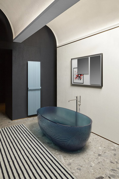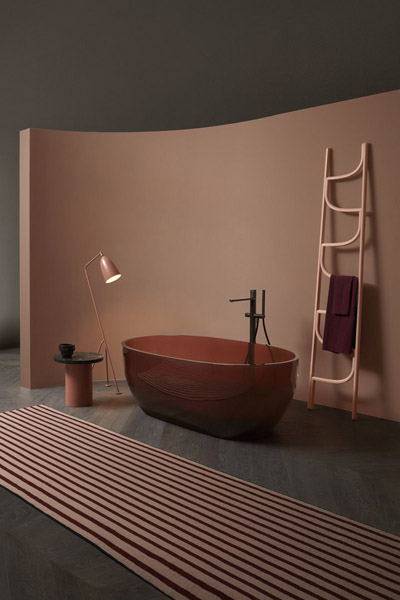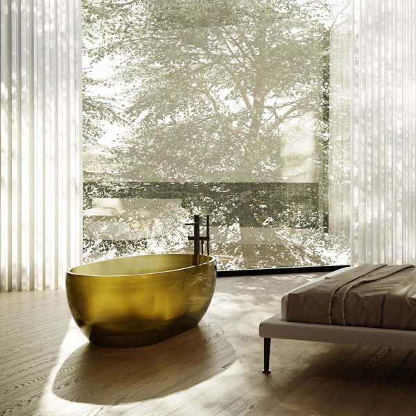 A new material, result of the antoniolupi research, is added to Flumood and Colormood. Baptized Cristalmood due to its transparency and sheen, a new generation colored resin, resistant and versatile. Created to produce sinks combined with the most diverse materials, achieving refined color combinations, Cristalmood, given its extraordinary characteristics, has already been used on a larger scale to make Reflex, the new bathtub by AL Studio design.