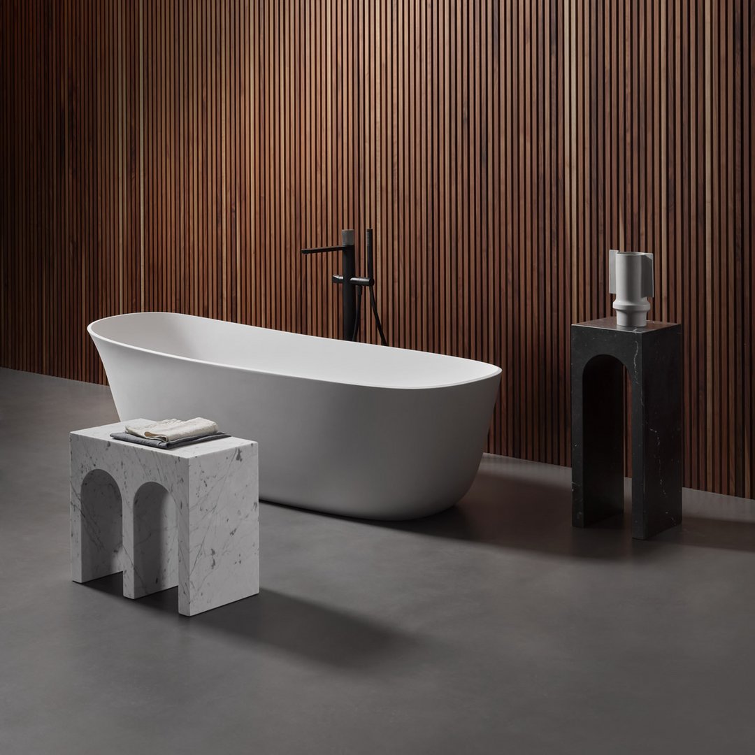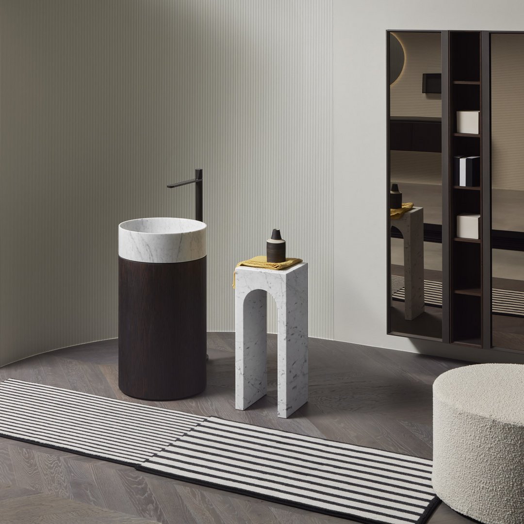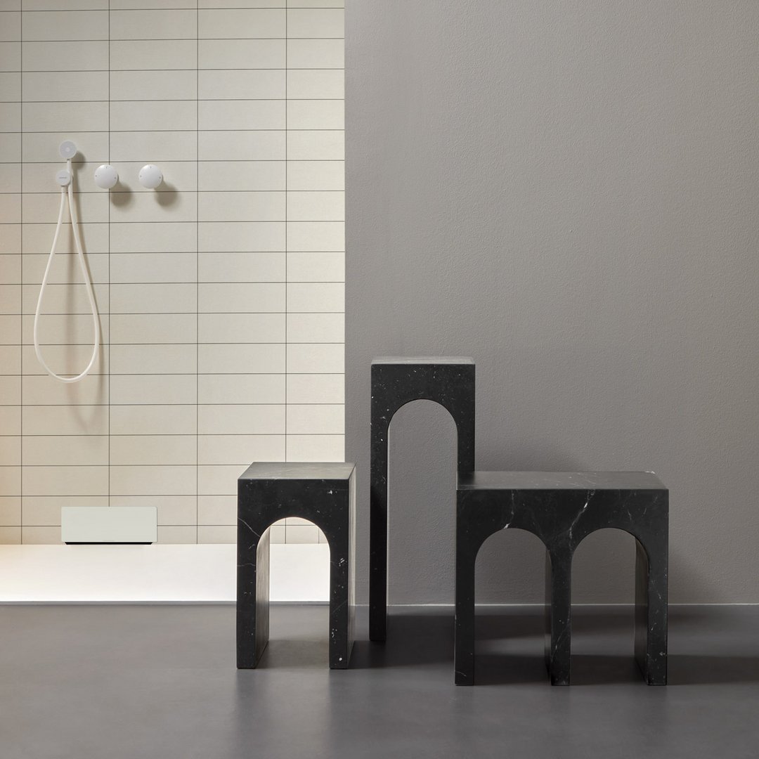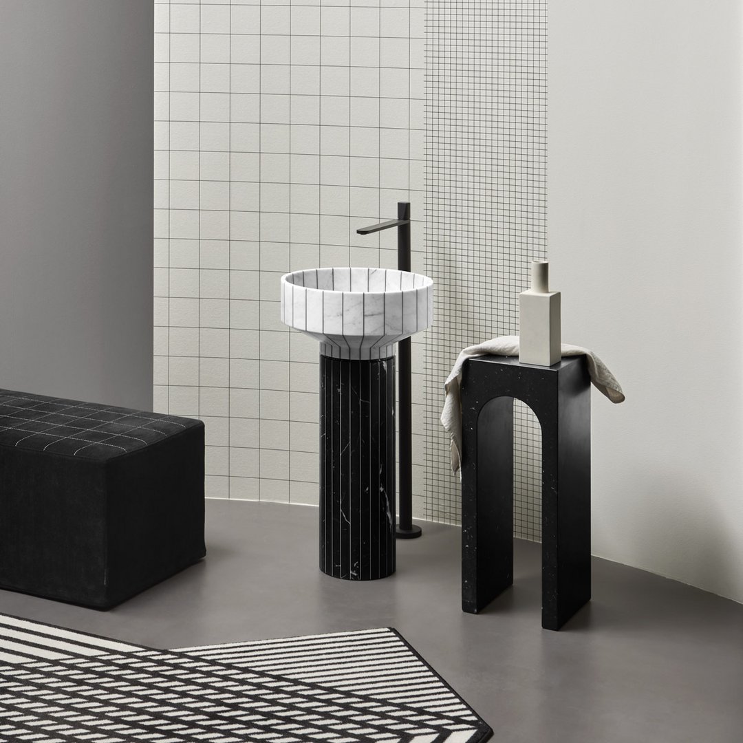 The profile is the unmistakable one of the “Palazzo della Civiltà Italiana”, symbol of the EUR district in Rome, with its absolute geometry and arched openings; the material refers to the classicism of the shapes to the imposing size, thickness, absolute and timeless elegance. The leap in scale allows you to move from a building to an object with style, coherence, and proportional balance. This is how the Roma coffee table collection was born, as a precious ally in the bathroom but also as a bedside table or in a living room with refined furnishings. Available single or in the double version.