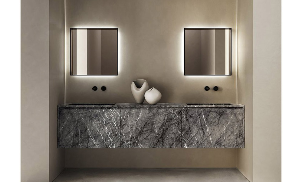 Street Collection is perfect in its rigorous geometry, contemporary in the squareness and essentiality of the lines enhanced by the infinite shades and color variations of marble. A sink that best expresses the tailoring of all Antonio Lupi projects, capable of interpreting the identity of any environment, of accommodating dimensional requirements, of expressing a sophisticated and elegant aesthetic. Two parallel straight lines draw the space, defining the space of water, two lines interrupted only by the changes in height of the top that give life to the orderly and modular sequence of bathtubs and countertops. Can be integrated in a niche or placed on the wall, in the version with cabinet or suspended, it identifies with formal cleanliness and material excellence the sink area.
