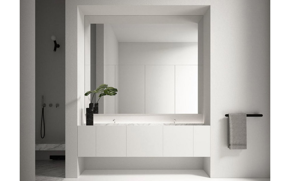In the cabinet-integrated version it dialogues with the finishes, textures and colors of the fronts revealing itself to the eye only from close up, while when suspended it allows the full perception of the uniqueness of the material. The essentiality of man’s gesture meets the uniqueness of nature, which finds its highest expression in marble. The whiteness and classic beauty of Bianco Carrara, the mysterious charm of Nero Marquina, the flickers of color and bright reflections of Rosso Levanto, unrepeatable aesthetic effects for a proposal that redefines the hierarchy of the bathroom space.