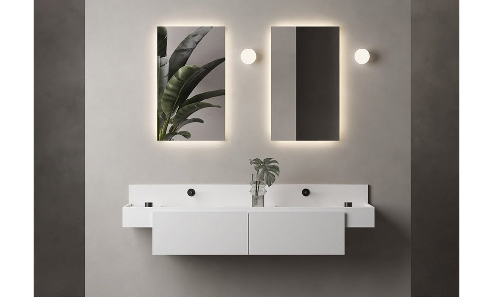 A design that reveals its originality in the infinite declinations available, a compositional tool that designs the space and the sink area within bathroom environments of different shapes and sizes, an architectural element that characterizes the environment while leaving the material the starring role. The character is that of a monolithic element, a linear shelf that seamlessly integrates basins and countertops inside. From the front, the basins (in sizes of 54 or 73 cm, single or double) are concealed from view both in the suspended version and in the recessed variant in the cabinet.