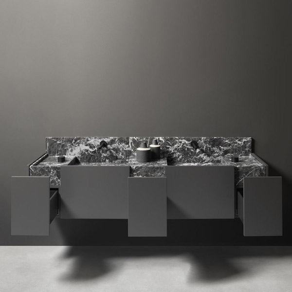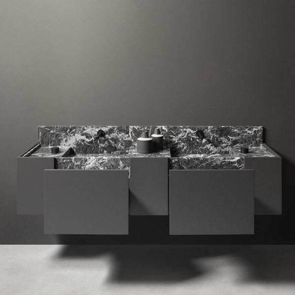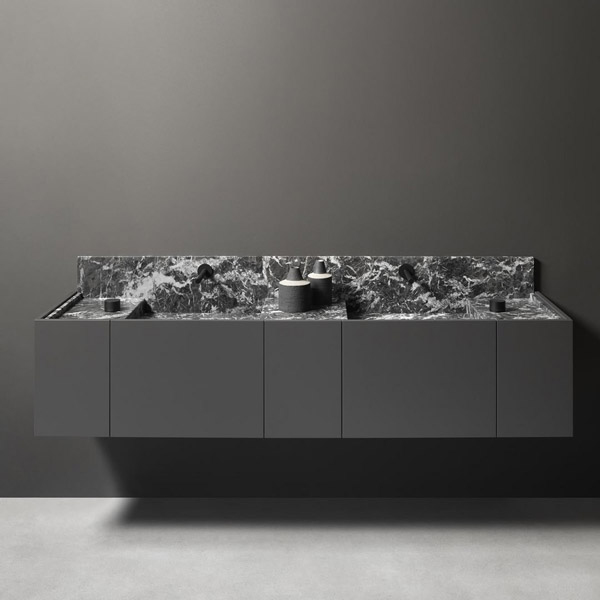 Once again, nature meets through man’s creativity and know-how. The difference is all in the height; the 25 cm of Street drops to 15 cm for Street Light, making the image more ethereal and the feeling of suspension and lightness even more pronounced. Street has mapped out a direction, redefined the principles of the sink area, proposed an innovative solution for tailor-made projects. A custom-made furniture project, both in terms of size and in the wide choice of Antonio Lupi marbles and stones, to be appreciated both in their freest version and in the encounter with the finishes and colors of the furniture. To convey identity to the space, to make each room unique.