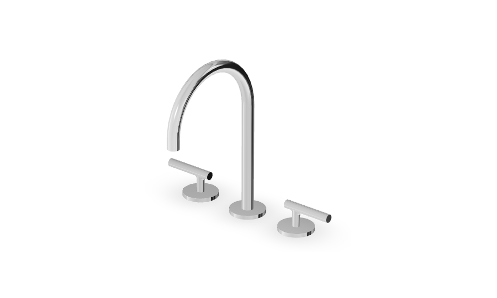 Pan S 3 hole basin mixer high spout with aerator, flexible tails, without pop-up waste. Water Saving – water flow rate of 6 l/min or less.
